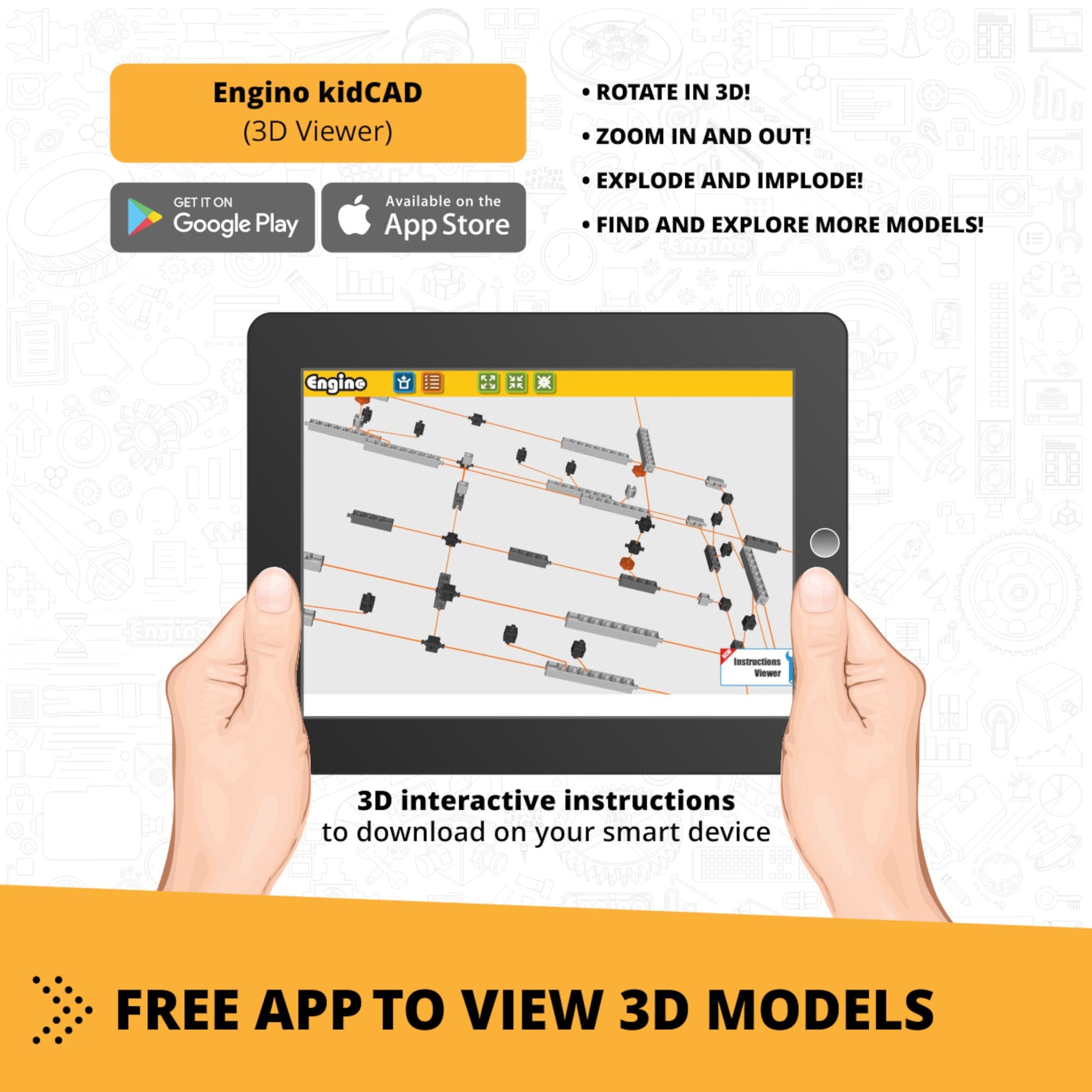 • Gedruckte Anleitungen für 1 Modell + 3 Online-Builds im KidCAD (3D-Viewer) zum Drehen/Zoomen/Explosionsansichten für eine einfachere Montage.