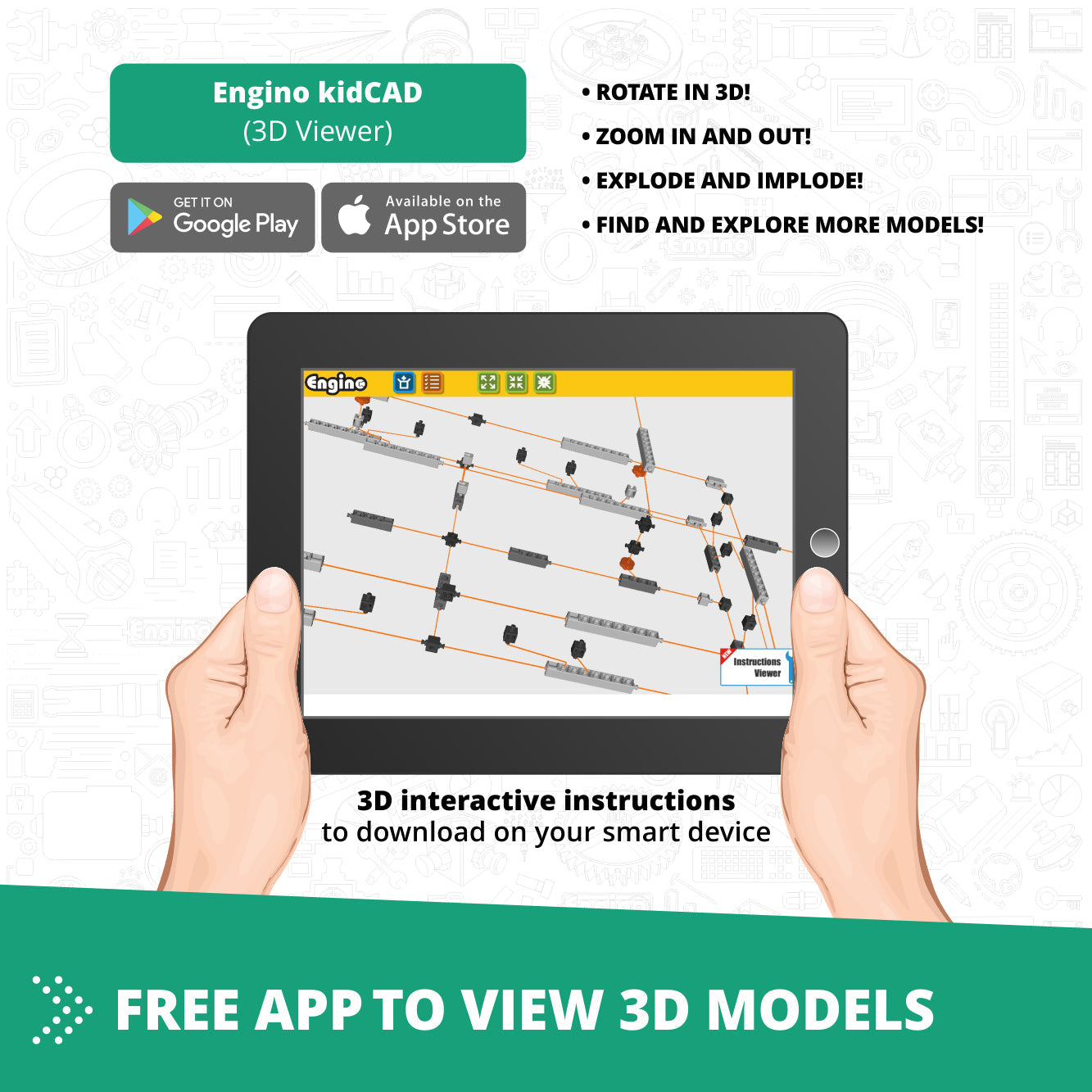 Online-3D-Anleitungen über die Engino kidCAD (3D Viewer)-App zur Rotations- und Zoom-Anleitung.
